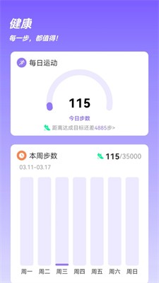 3、多维健康报告功能对运动数据进行深度分析,生成包含步频稳定性、运动强度分布、热量消耗趋势的专业图表,为调整锻炼方案提供数据支持。