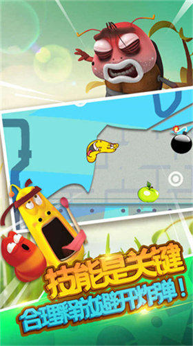 2、动态场景交互设计,路障、机关等场景元素会与虫虫产生真实物理互动