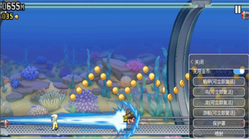 1、涡轮加速装置与磁力代币组合:大幅提升飞行速度同时自动吸附周边代币